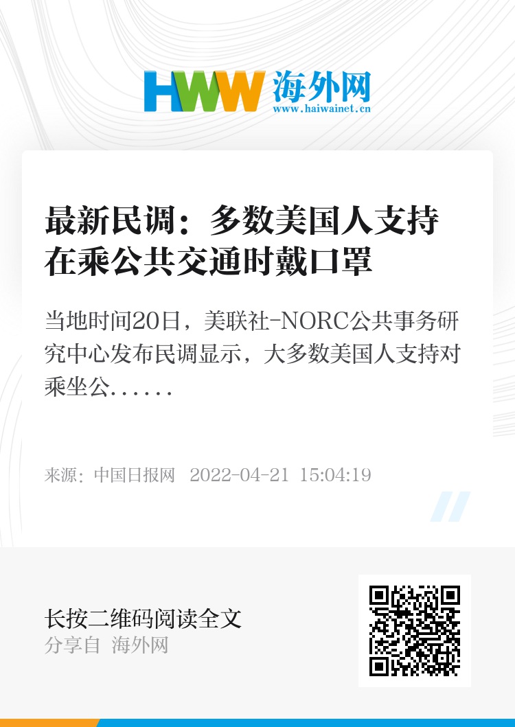 美联社称,在戴口罩这个问题上,美国两党存在广泛的分歧。在民主党人中,80%的人支持口罩令,只有5%的人反对;在共和党人中,45%的人反对,33%的人支持。上周,美国疾控中心CDC将公共交通口罩强制令延长至5月3日。然而本周一,美国一名联邦法官作出一项裁决,推翻了由CDC发布的口罩令。