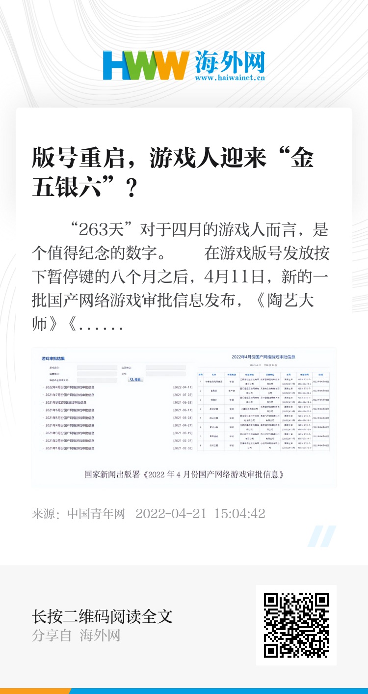 所以当国家新闻出版署于4月11日发布2022年第一批国产网络游戏审批信息时,很多游戏打工人表示简直不敢相信自己的眼睛。