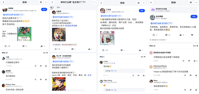 新的机遇已到,但不少中小型游戏公司和工作室早在冬眠期就缩编缩没了人。消息一出,各大游戏公司的HR闻风而动,憋了八个月的劲儿终于一朝爆发,纷纷开启了招人通道,将游戏行业推向“金五银六”的招聘热潮。甚至有脉友预测,游戏公司之间会再度掀起“抢人大战”。