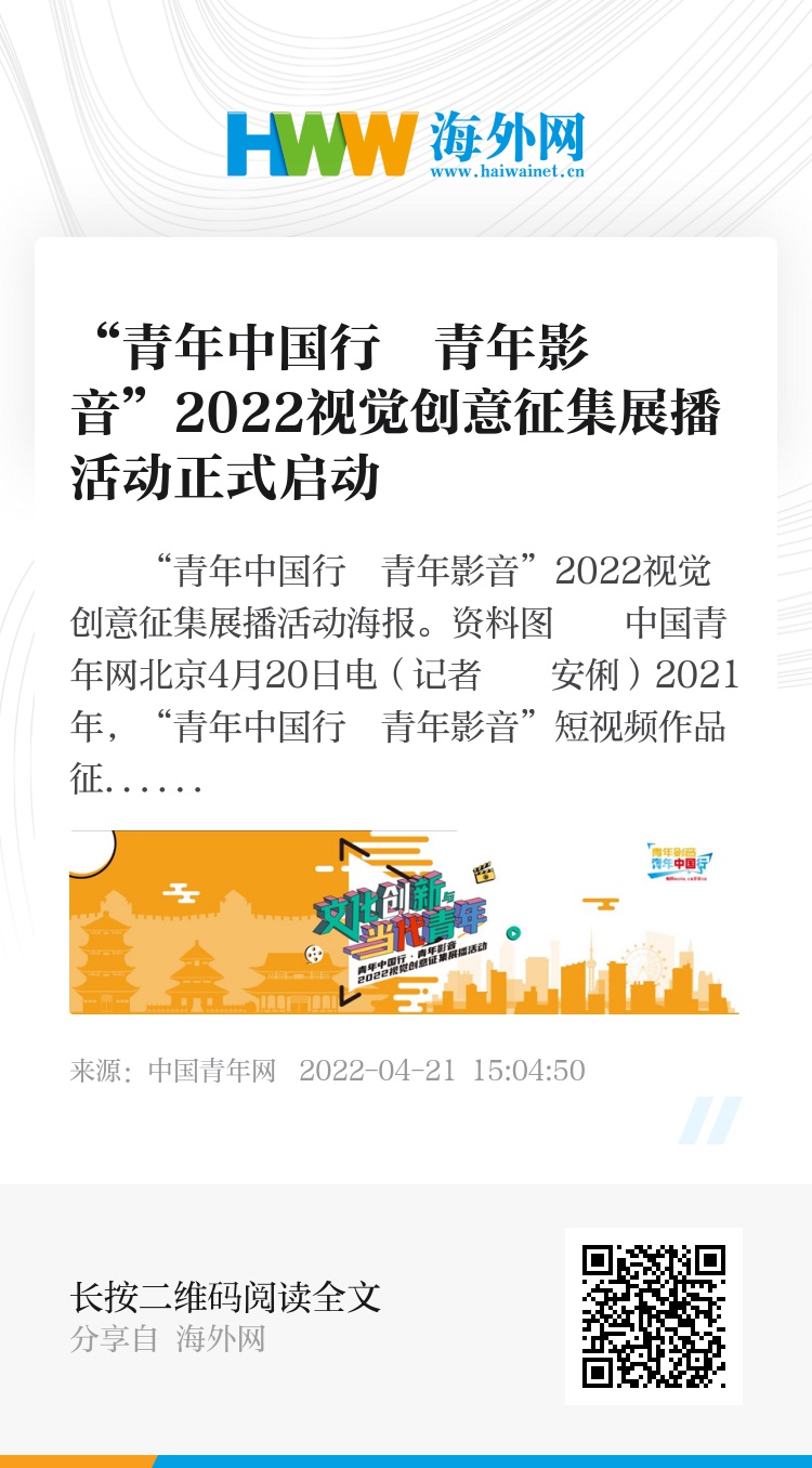 “青年中国行・青年影音”2022视觉创意征集展播活动海报。资料图