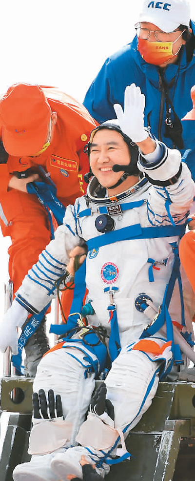 叶光富最后出舱,面对人群做了“点赞”“比心”的手势。“我也实现了飞天梦想,可以自豪地向祖国报到!”叶光富说。