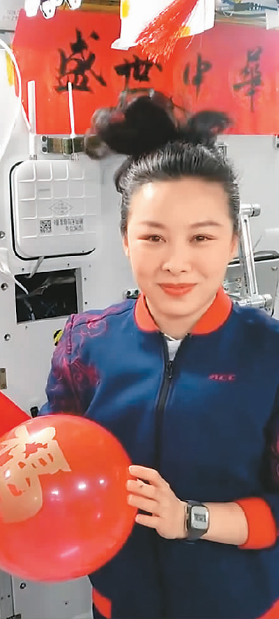 在太空过大年的王亚平向祖国和人民送上祝福。新华社发