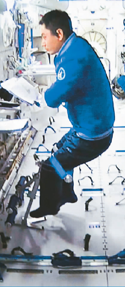 叶光富在核心舱内工作的场景。郭中正摄(新华社发)