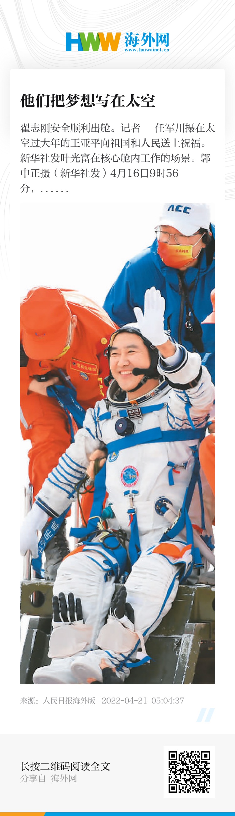 神舟十三号飞行乘组还迈出了中国女性舱外太空行走第一步。