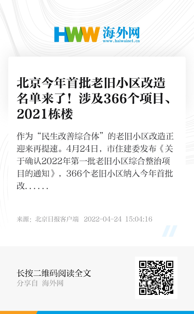 2021年,北京将推进老旧小区改造纳入接诉即办“每月一题”重点督办事项,全市已有558个老旧小区纳入改造清单。2022年,“十四五”的第二年,为继续集中解决基础设施陈旧、整体环境落后、生活出行不便等群众“急难愁盼”问题,老旧小区改造再提速。