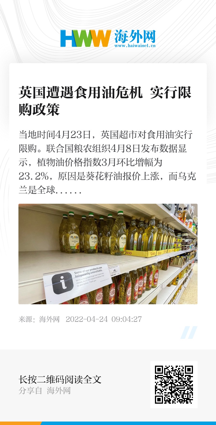 32399715,.英国遭遇食用油危机 实行限购政策,.2022-04-24 09:50:27,.204428,.张青津、夏丽娟