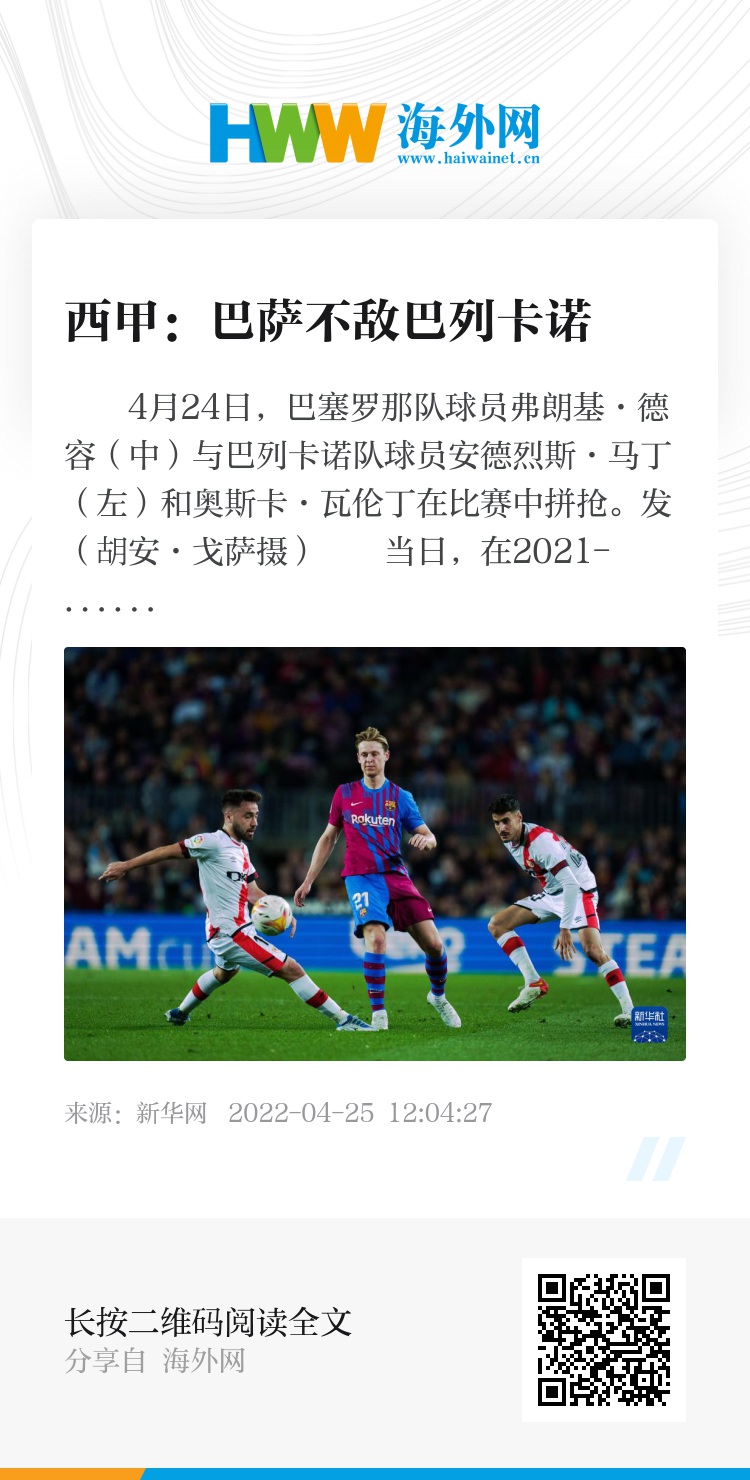 当日,在2021-2022赛季西班牙足球甲级联赛第21轮的一场补赛中,巴塞罗那队主场以0比1不敌巴列卡诺队。