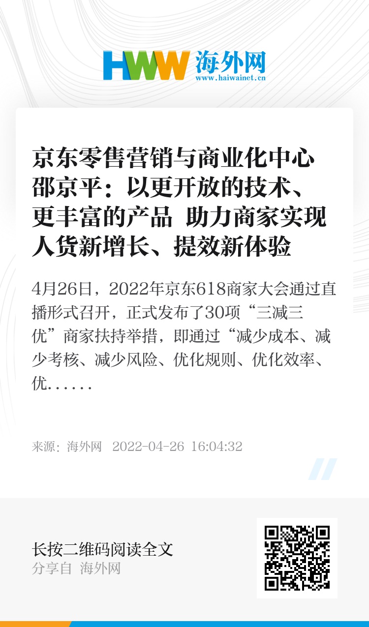 此外,邵京平还表示,通过打通市场营销、用户增长、商业提升的核心能力,今年京东618,营销与商业化中心也将整合更丰富的触达资源与用户互动触点,助力商家营销投放更加精准、高效。【推广】
