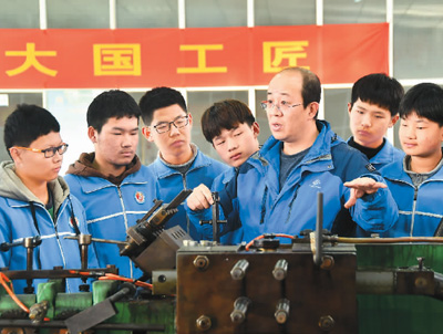 河北省邯郸市永年区职教中心的老师在向学生讲解紧固件工艺技术。 胡高雷摄(人民视觉)