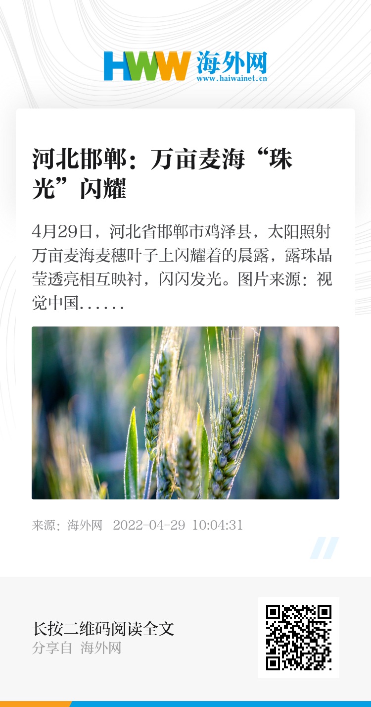 32404916,.河北邯郸:万亩麦海“珠光”闪耀,.2022-04-29 10:25:31,.204428,.张青津、夏丽娟