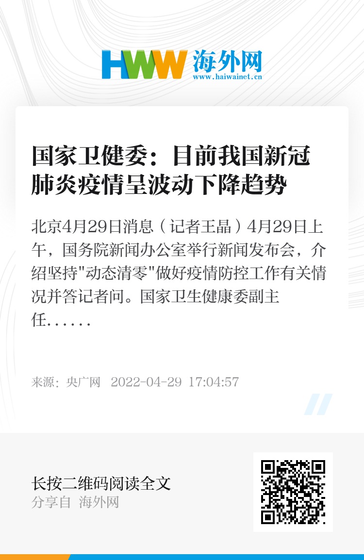 央广网北京4月29日消息(记者王晶)4月29日上午,国务院新闻办公室举行新闻发布会,介绍坚持"动态清零"做好疫情防控工作有关情况并答记者问。国家卫生健康委副主任李斌在发布会上介绍,目前吉林及其他多地聚集性疫情得到有效控制,上海"清零"攻坚战初见成效,全国疫情呈波动下降趋势。