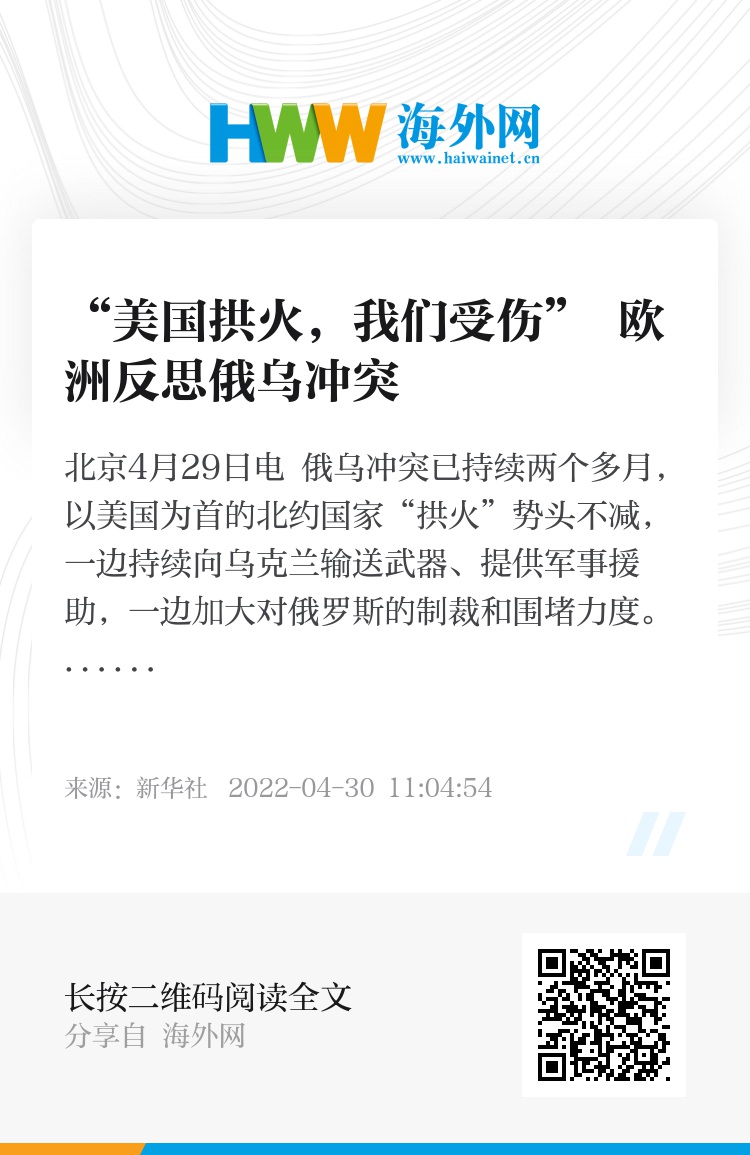 新华社北京4月29日电 俄乌冲突已持续两个多月,以美国为首的北约国家“拱火”势头不减,一边持续向乌克兰输送武器、提供军事援助,一边加大对俄罗斯的制裁和围堵力度。