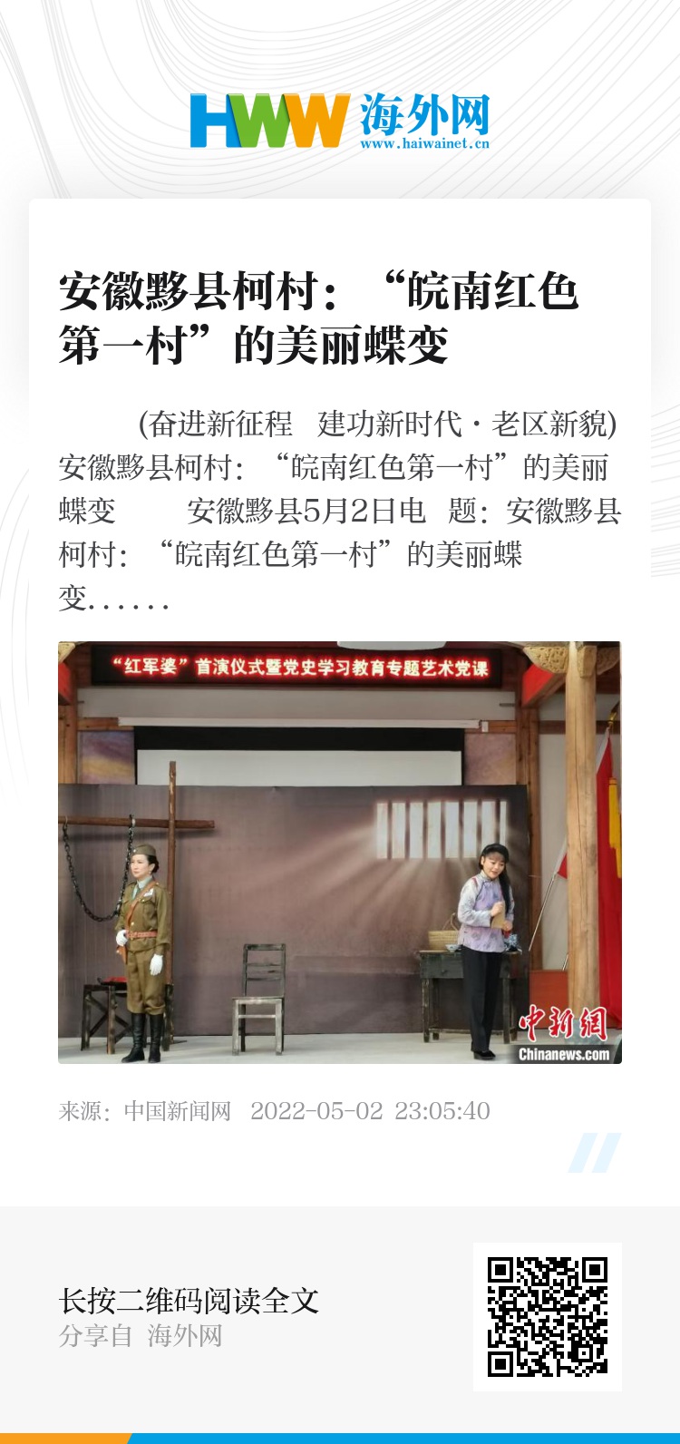 中新网安徽黟县5月2日电 题:安徽黟县柯村:“皖南红色第一村”的美丽蝶变