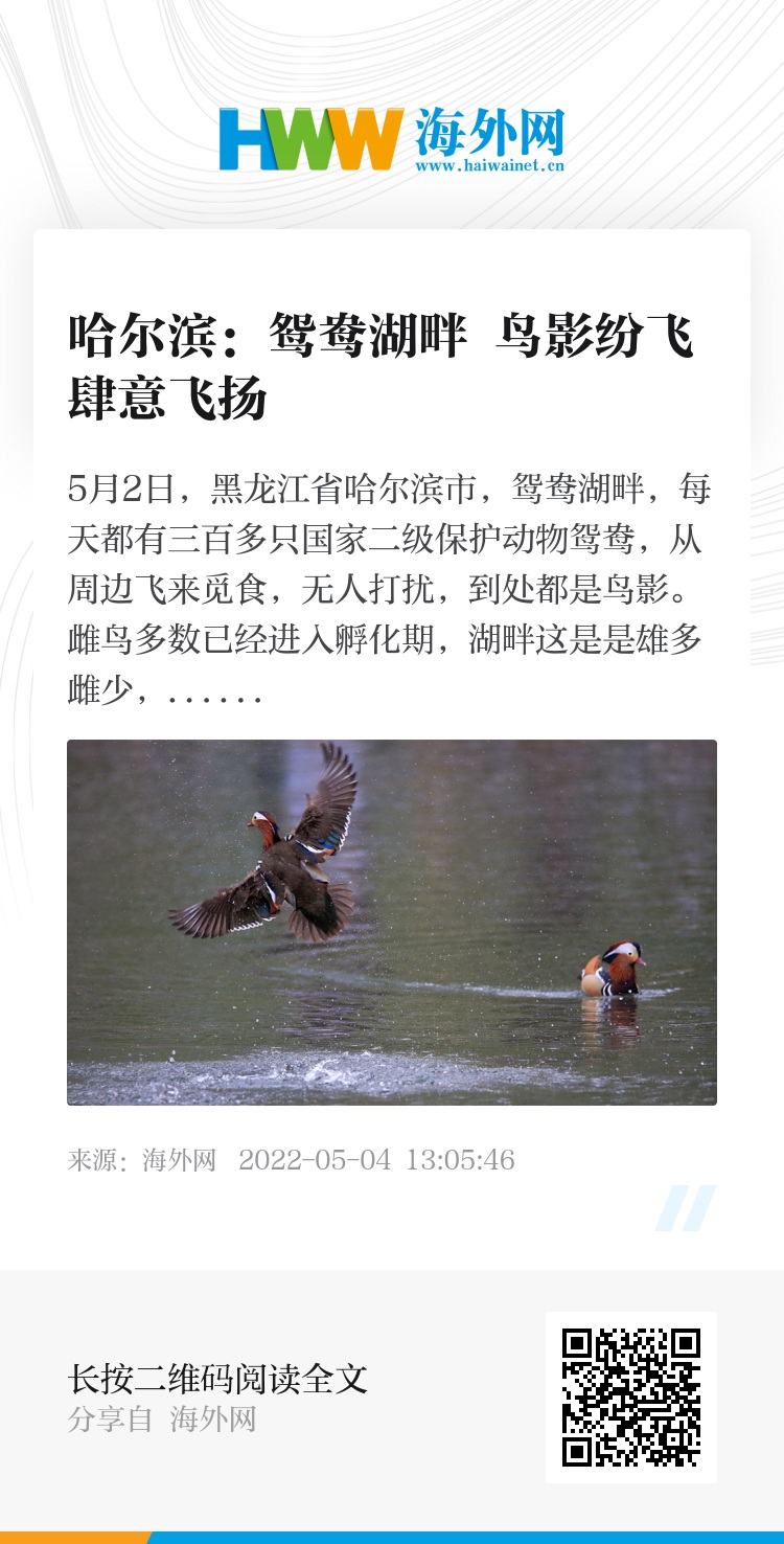 32408663,.哈尔滨:鸳鸯湖畔 鸟影纷飞肆意飞扬,.2022-05-04 13:42:46,.204428,.张青津、陈亚楠