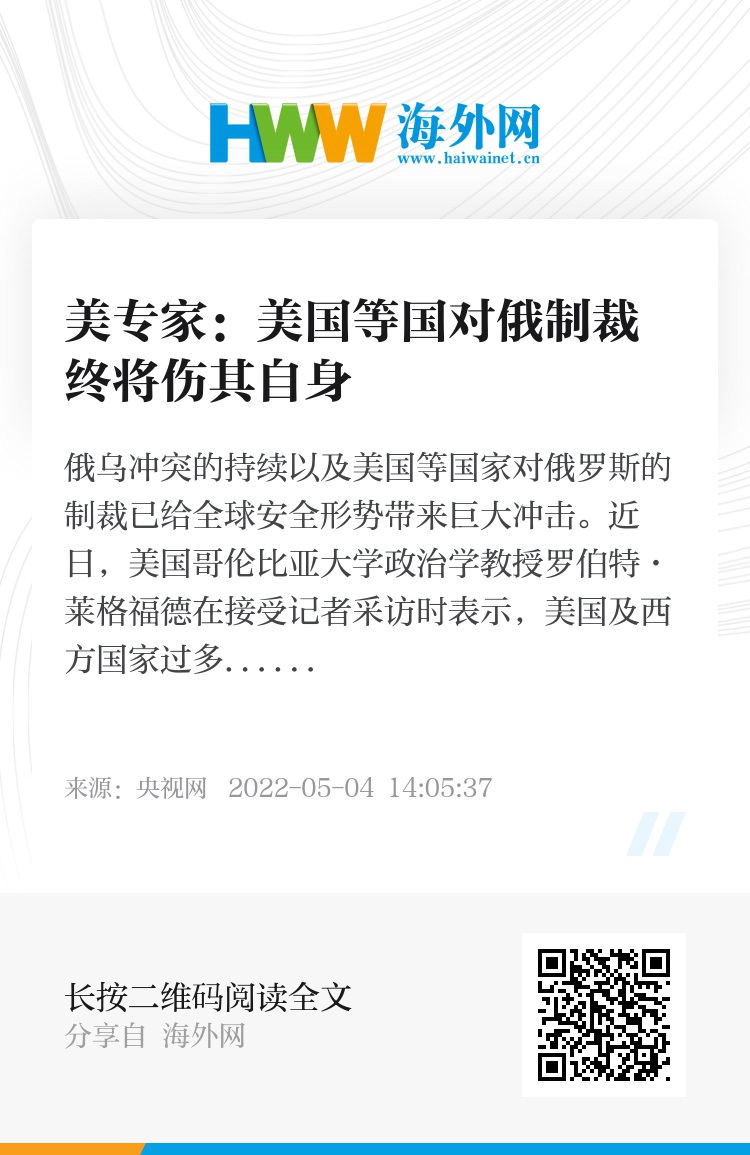俄乌冲突的持续以及美国等国家对俄罗斯的制裁已给全球安全形势带来巨大冲击。近日,美国哥伦比亚大学政治学教授罗伯特·莱格福德在接受记者采访时表示,美国及西方国家过多插手俄乌局势,一再对俄罗斯进行金融、能源等领域的制裁,这些制裁看似遏制俄罗斯经济发展,但也反过来让美国等西方国家承受供应链紧张、能源价格上涨的压力,并最终让普通民众为此买单。