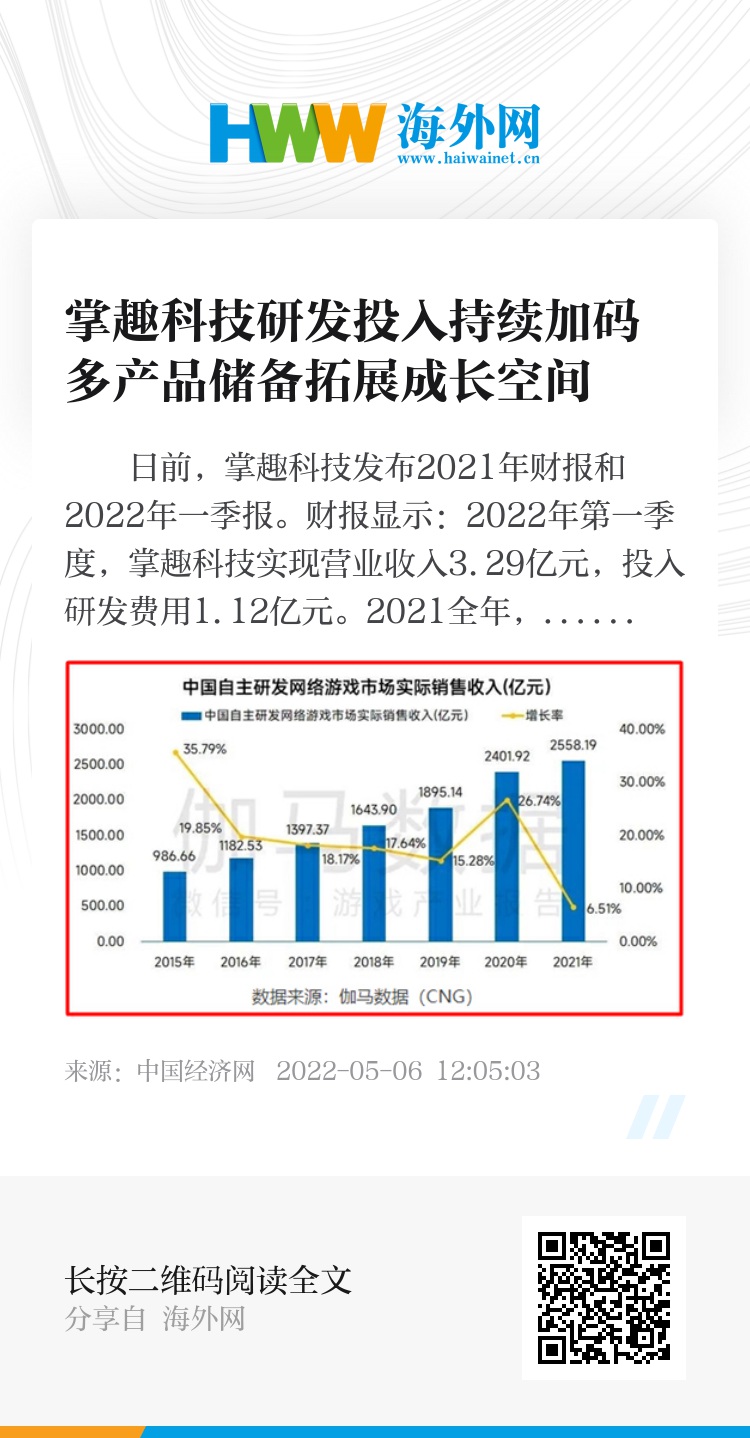 日前,掌趣科技发布2021年财报和2022年一季报。财报显示:2022年第一季度,掌趣科技实现营业收入3.29亿元,投入研发费用1.12亿元。2021全年,公司投入研发费用5.58亿元,同比增长15.86%。研发人员962人,占比69.51%。多年来持续加强对研发技术、人才的创新投入,有效推动了掌趣科技工业化研发体系的完善,其多元化产品矩阵及精品游戏可持续交付优势日渐凸显。