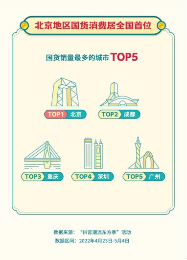 数据显示,国货消费数量最多的城市是北京,紧随其后的是成都、重庆、深圳、广州。