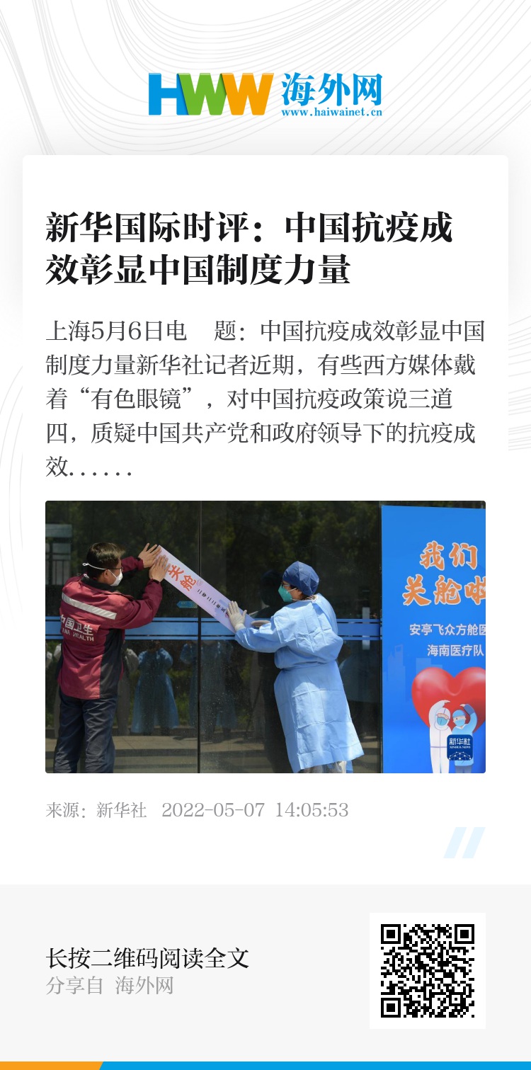 新华社上海5月6日电 题:中国抗疫成效彰显中国制度力量