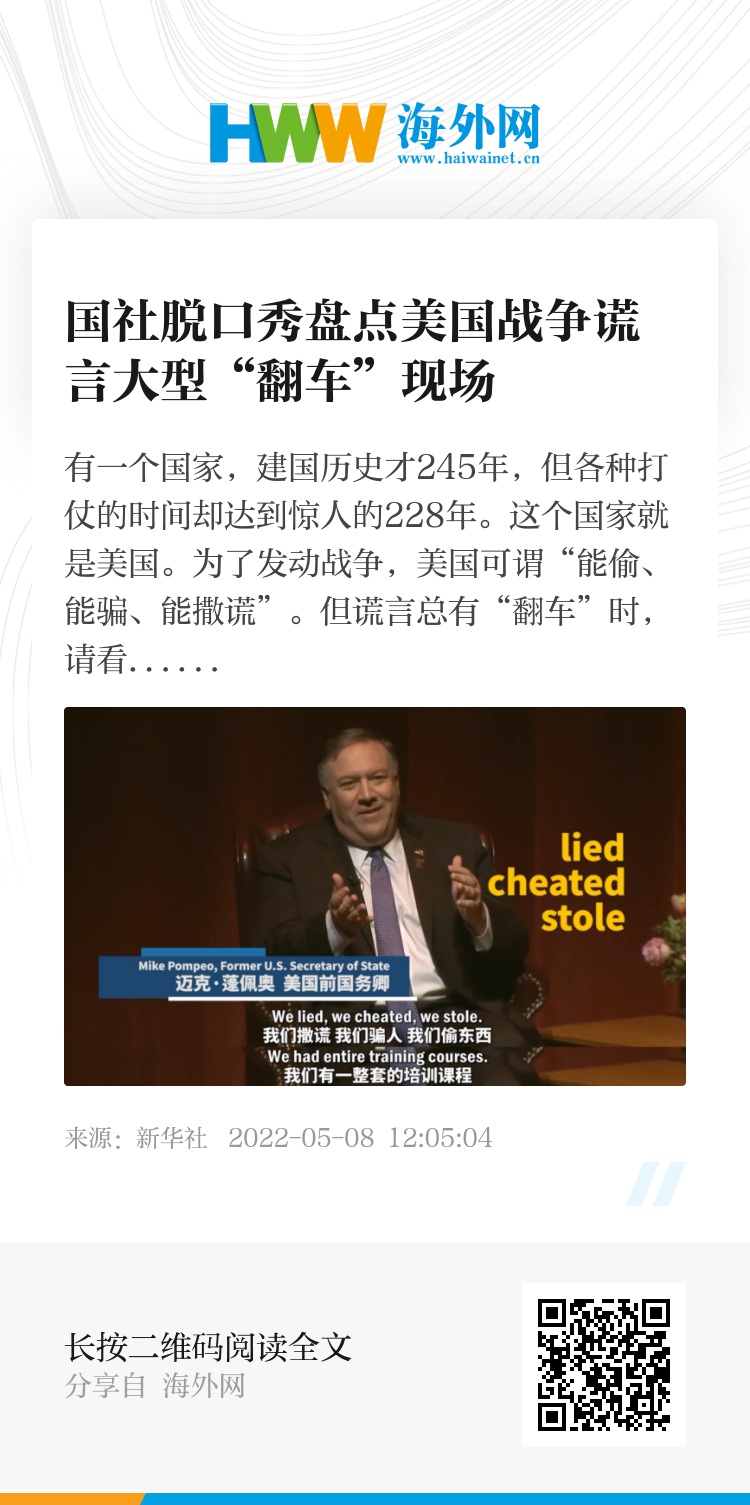 这个国家就是美国。为了发动战争,美国可谓“能偷、能骗、能撒谎”。但谎言总有“翻车”时,请看国社小姐姐王迪迩携手宝藏小哥郑锦强盘点美国战争谎言的“翻车”现场。
