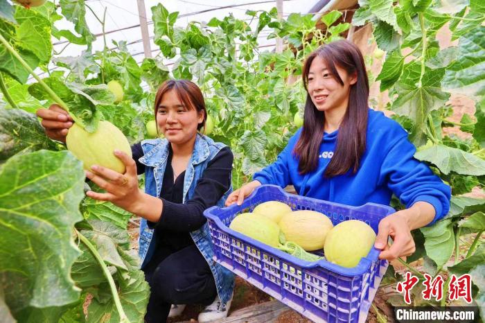 如何推动产业升级,阿克苏市人民检察院驻村工作队和村“两委”通过实地调研,从北京市农林科学院引进博洋9号羊角蜜甜瓜,鼓励村民在5座大棚进行种植。