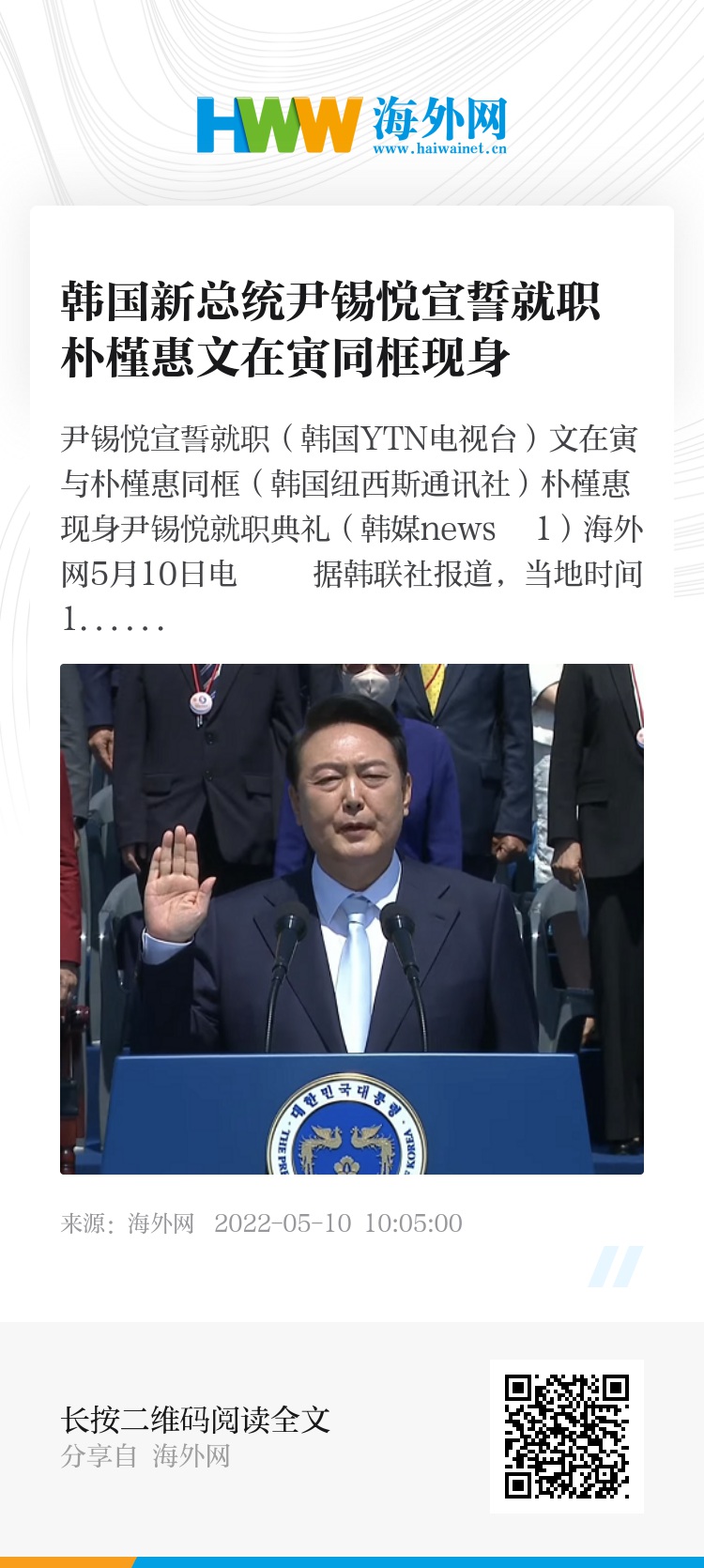 朴槿惠现身尹锡悦就职典礼(韩媒news 1)