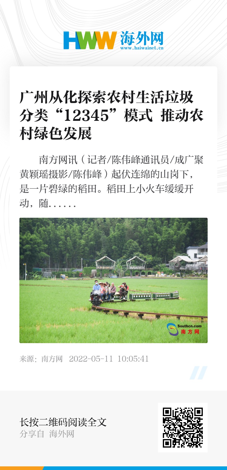 接下来,从化区还将不断充实完善“12345”农村生活垃圾分类模式,建设从化特色新农村,助力村民绿色生活,推动农村绿色发展,继续为高质量建设幸福美丽生态之城提供有力支撑。
