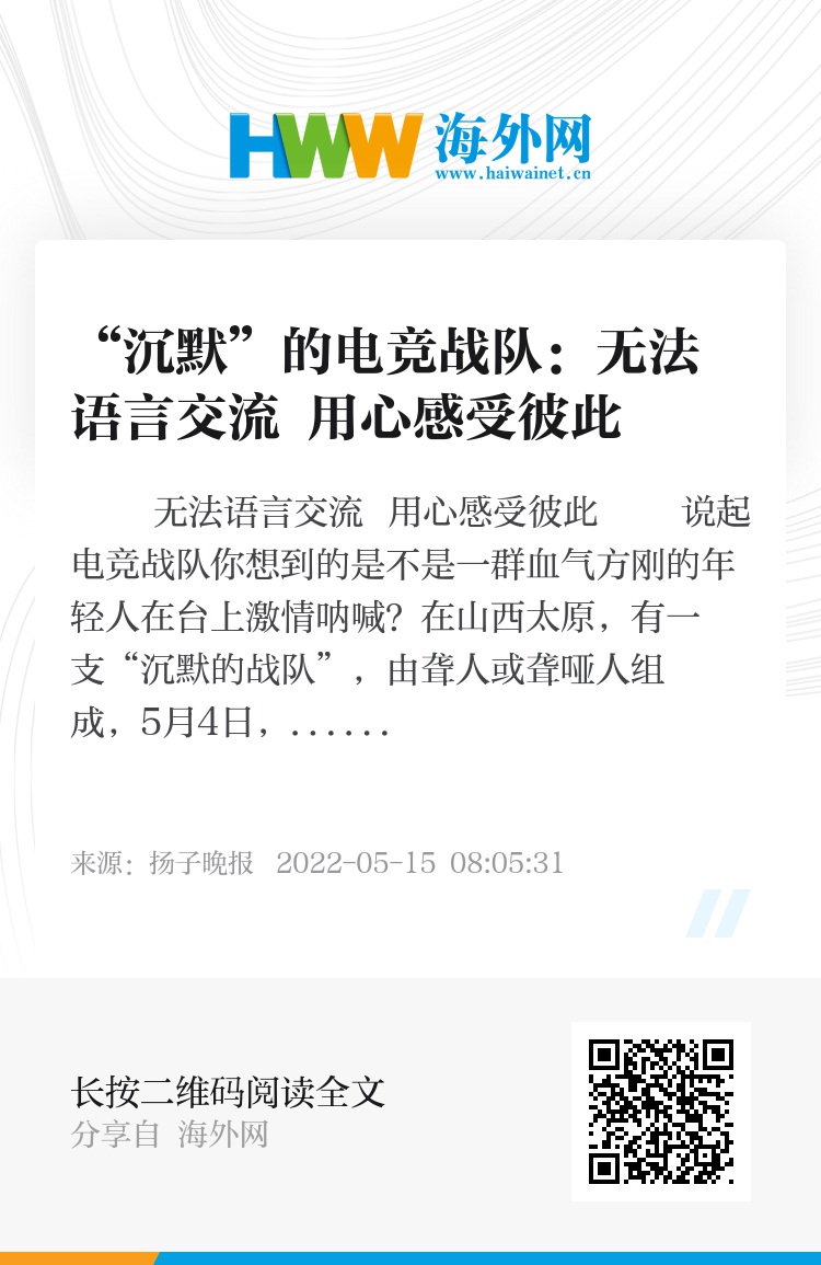 说起电竞战队你想到的是不是一群血气方刚的年轻人在台上激情呐喊?在山西太原,有一支“沉默的战队”,由聋人或聋哑人组成,5月4日,他们在王者荣耀全国大赛中打入山西省八强。近日,战队队长赵超颖接受扬子晚报记者采访时表示,“在赛场上我们无法交流,但相同的经历可以让我们用心去感受彼此,形成一种特殊的默契。”