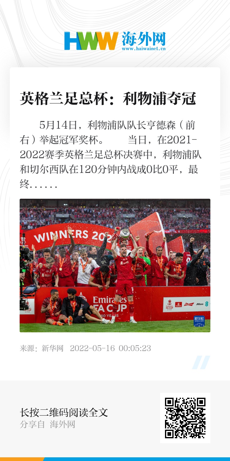 当日,在2021-2022赛季英格兰足总杯决赛中,利物浦队和切尔西队在120分钟内战成0比0平,最终利物浦队在点球大战中以6比5战胜切尔西队。