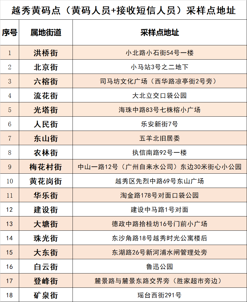 南方网讯 5月15日晚,广州市越秀区公布18条街道核酸检测场地(黄码点位),请市民们尽快前往就近检测点检测!