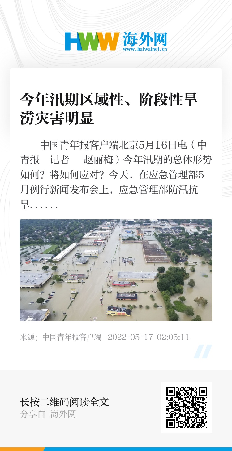 中国青年报客户端北京5月16日电(中青报・中青网记者 赵丽梅)今年汛期的总体形势如何?将如何应对?今天,在应急管理部5月例行新闻发布会上,应急管理部防汛抗旱司司长陈敏表示,根据气象和水利部门预测,今年汛期我国气候状况总体为一般到偏差,旱涝并重,区域性、阶段性旱涝灾害明显,极端天气气候事件偏多,主要多雨区在我国北方,黄河中下游、海河、辽河、嫩江等流域可能有较重汛情,长江上游、珠江流域西江、东南沿海诸河有可能发生区域性洪水。全年登陆我国的台风个数接近常年到偏多,台风影响偏重。