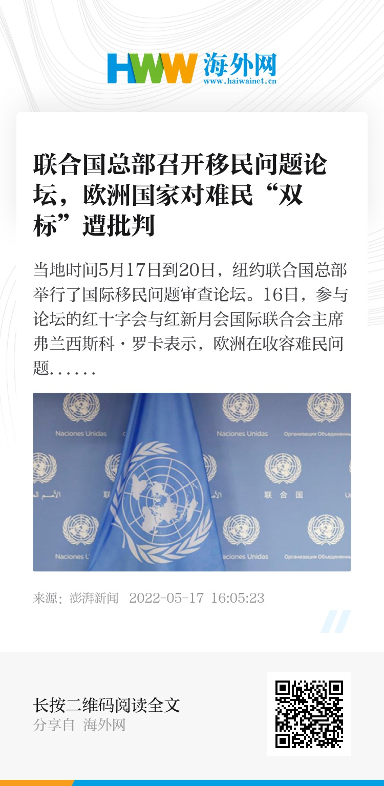 当地时间5月17日到20日,纽约联合国总部举行了国际移民问题审查论坛。16日,参与论坛的红十字会与红新月会国际联合会主席弗兰西斯科·罗卡表示,欧洲在收容难民问题上存在双重标准。