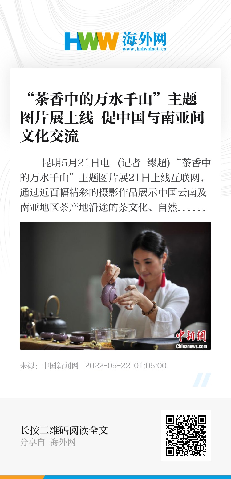 中新网昆明5月21日电 (记者 缪超)“茶香中的万水千山”主题图片展21日上线互联网,通过近百幅精彩的摄影作品展示中国云南及南亚地区茶产地沿途的茶文化、自然风光、人文风情,“以茶为媒”促进中国与南亚之间的文化交流互鉴。
