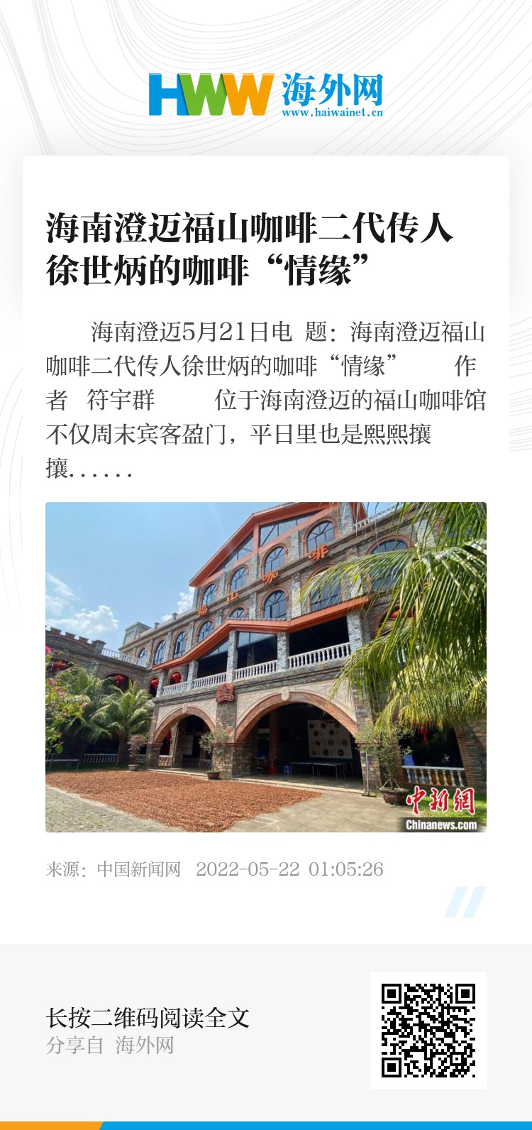 中新网海南澄迈5月21日电 题:海南澄迈福山咖啡二代传人徐世炳的咖啡“情缘”