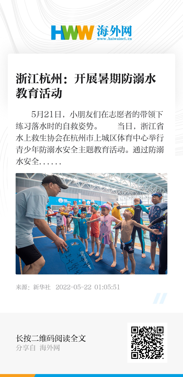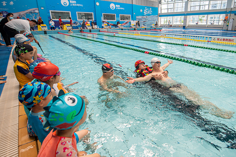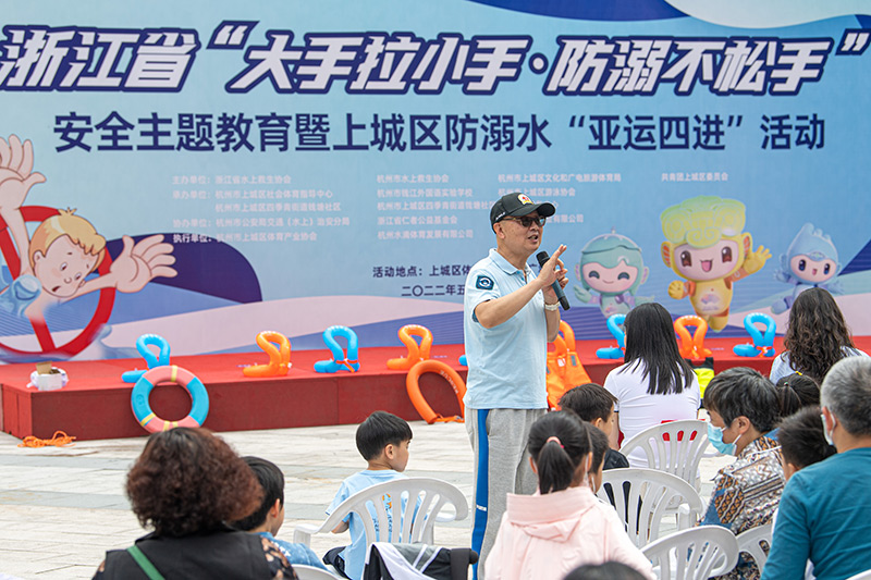 当日,浙江省水上救生协会在杭州市上城区体育中心举行青少年防溺水安全主题教育活动。通过防溺水安全知识课和水上救生技能现场体验课,让参与活动的小朋友和家长学习防溺水安全知识。