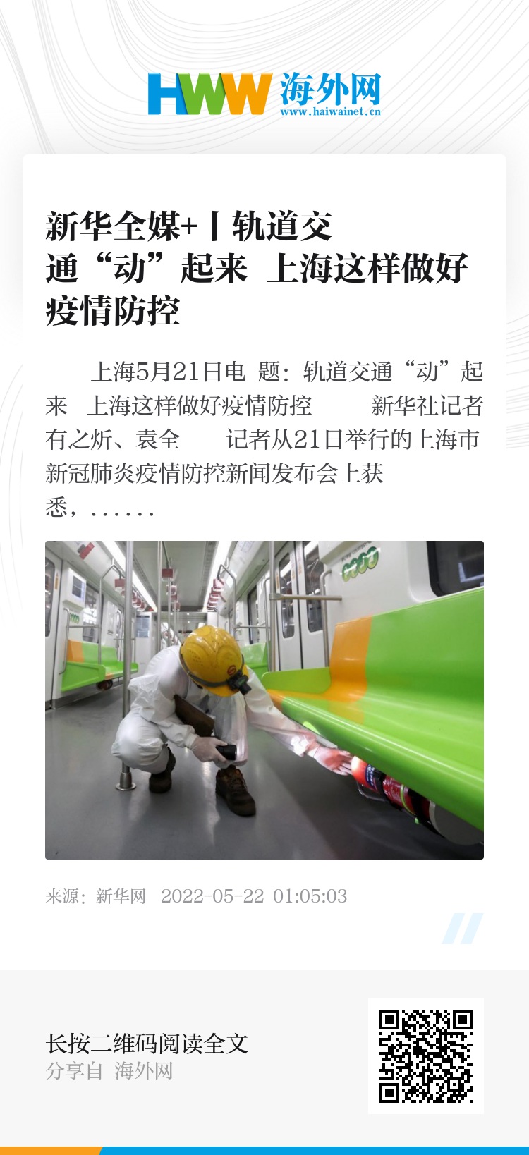 新华社上海5月21日电 题:轨道交通“动”起来 上海这样做好疫情防控