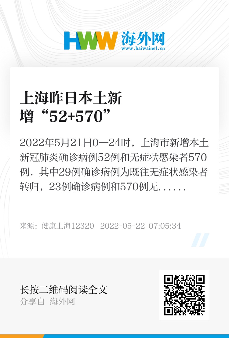 2022年5月21日0—24时,新增本土无症状感染者570例。