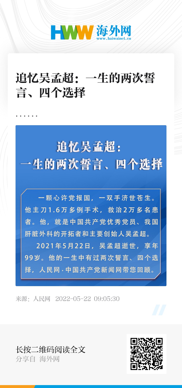 追忆吴孟超:一生的两次誓言、四个选择