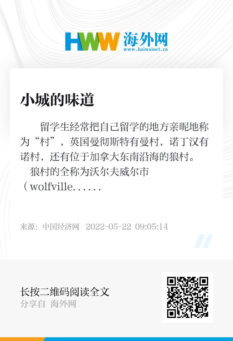 留学生经常把自己留学的地方亲昵地称为“村”,英国曼彻斯特有曼村,诺丁汉有诺村,还有位于加拿大东南沿海的狼村。