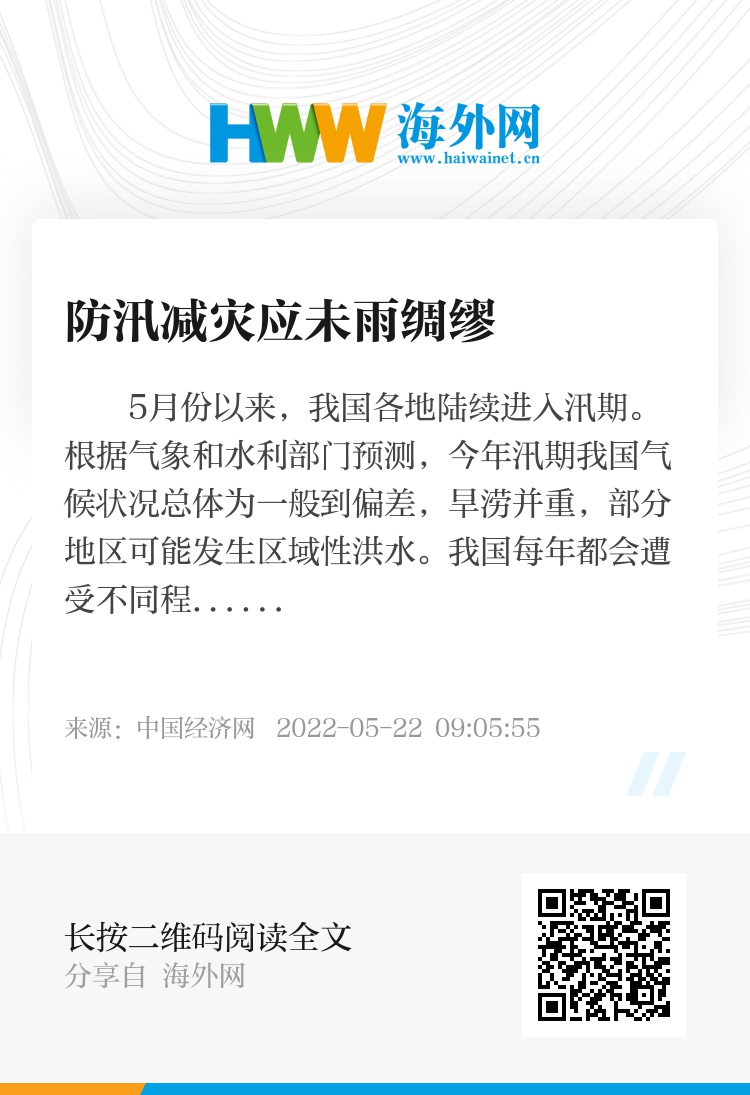 5月份以来,我国各地陆续进入汛期。根据气象和水利部门预测,今年汛期我国气候状况总体为一般到偏差,旱涝并重,部分地区可能发生区域性洪水。我国每年都会遭受不同程度的洪水侵害,当下的情况尤为特殊严峻,新冠肺炎疫情点多、面广、频发,而洪水会在城市、农村留下大量积水、淤泥、垃圾等,成为病毒、细菌传播的温床,危害人民身体健康和生命安全。同时,各地复工复产正在紧张进行,“淹不得、淹不起”。因此,下好今年防汛“先手棋”,打好减灾“主动仗”,对我国经济发展、社会稳定、人民安居乐业有着至关重要的作用。