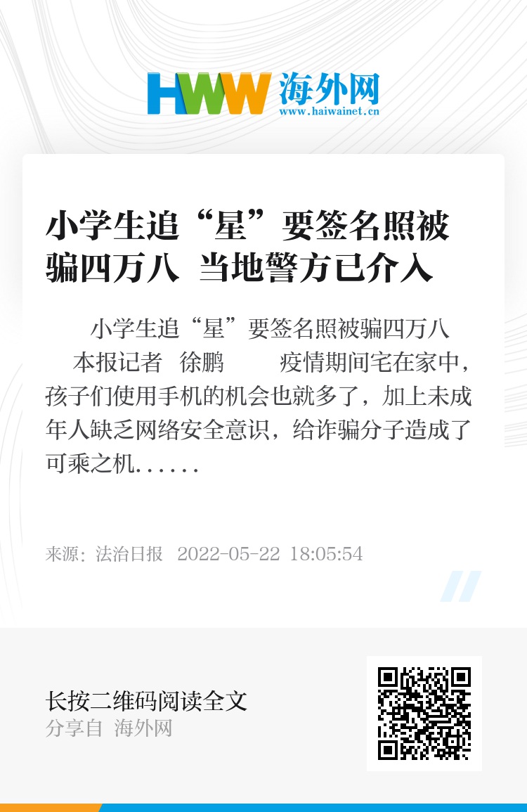小学生追“星”要签名照被骗四万八