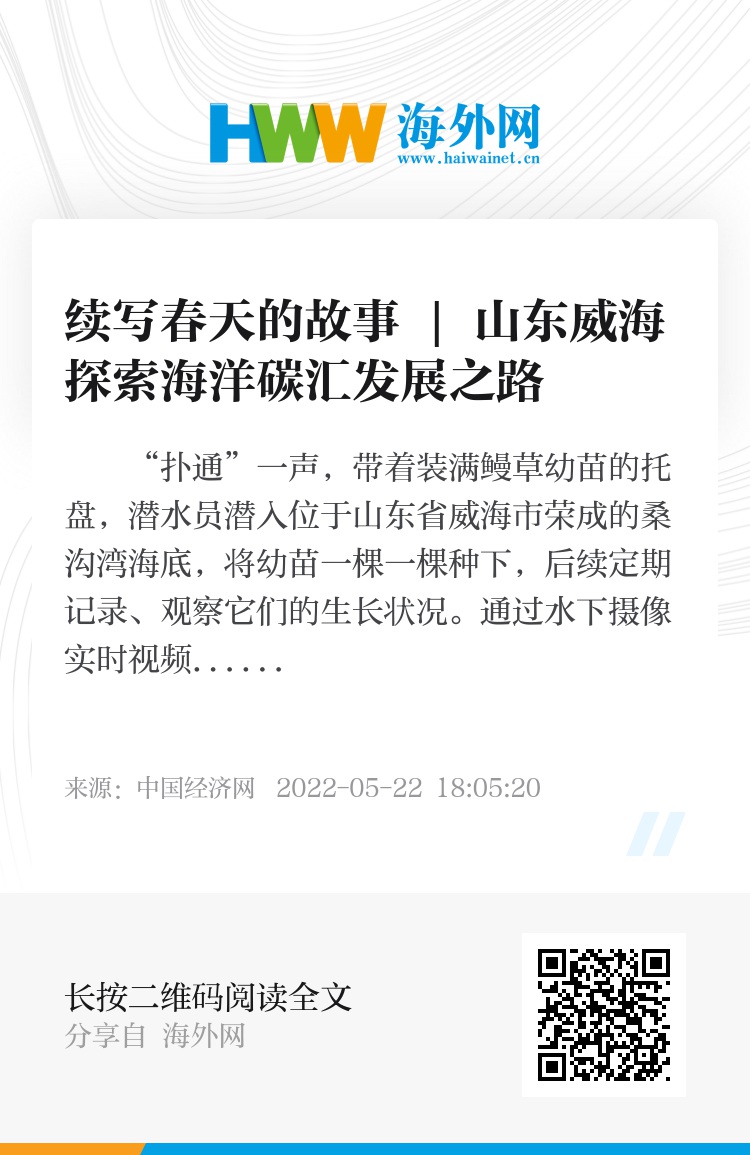 目前,威海正全力加快建设海洋碳汇交易平台建设。同时,山东省海洋负排放院士工作站已经在桑沟湾养殖海域完成碳汇摸底调查首航,围隔海上实验平台也已在威海万亩海带养殖码头下水。两项活动,目的一致——为海洋碳汇实验提供数据基础,最终实现碳汇交易。下一步,威海市蓝色经济研究院的科研人员将配合院士工作站建设,联合山东大学海洋研究院等科研院所,继续加强海洋负排放领域理论研究和实践探索,开发不同类型的海洋负排放技术。