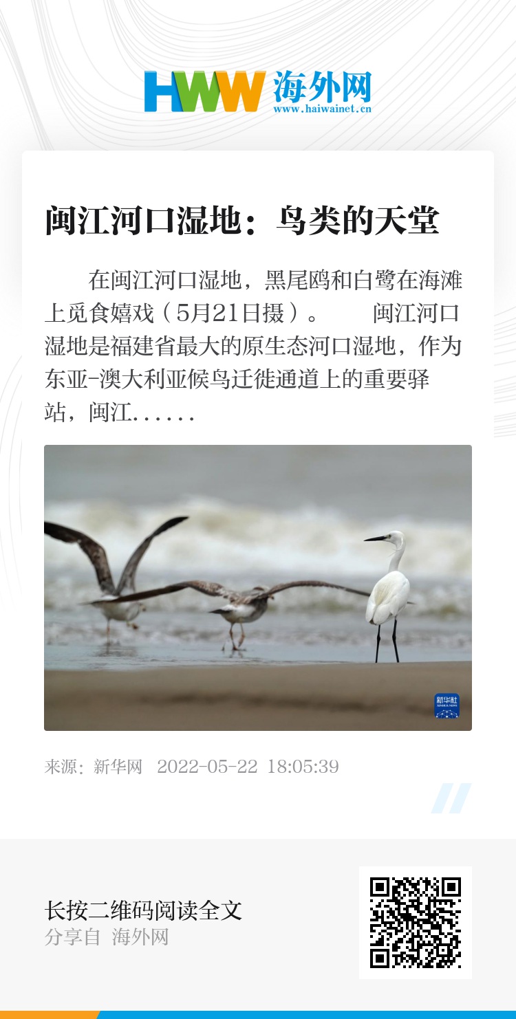 闽江河口湿地是福建省最大的原生态河口湿地,作为东亚-澳大利亚候鸟迁徙通道上的重要驿站,闽江河口湿地是名副其实的“鸟类王国”。据介绍,目前该湿地野生动植物有1089种,其中水鸟152种,占福建水鸟种群80.4%,年均栖息该湿地水鸟数量超5万只,多种全球极危和濒危鸟类成为“常客”。