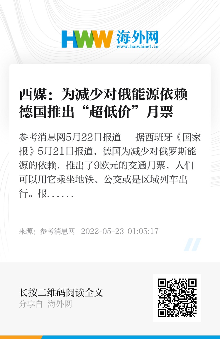 报道称,俄乌冲突推动了德国减少对化石燃料依赖的努力。当局正在不断呼吁节约能源。甚至连该国最大的汽车司机协会(ADAC)也呼吁车主在可能的情况下把车留在家里。9欧元的月票是为了鼓励民众减少自驾车出行。德国交通部长福尔克·维辛在宣布这一消息时说:“我们希望公民意识到公共交通提供的可能性,使用它并将它永久地融入日常出行。”