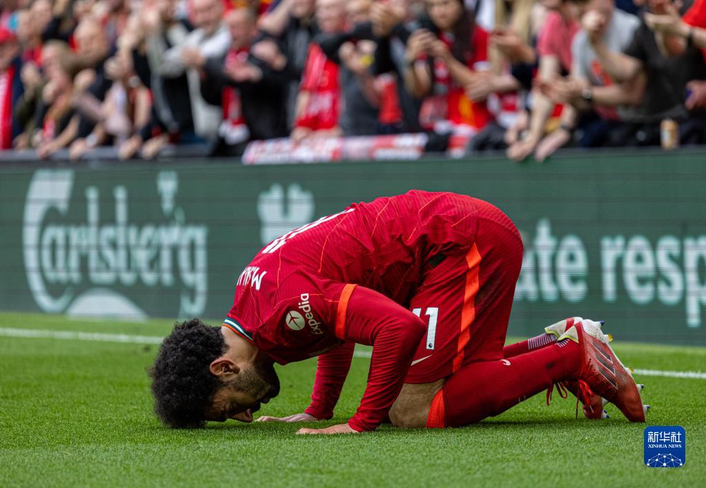 5月22日,利物浦队球员萨拉赫庆祝进球。新华社发