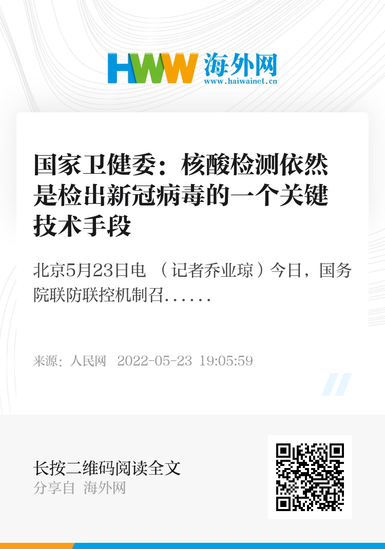 对此,医政医管局监察专员郭燕红表示,核酸检测是非常专业的一项技术,近几年,受到了社会公众的高度关注,也慢慢走近了普通人的身边。核酸检测是诊断新冠病毒感染的金标准,它的阳性检出时间早、准确度高,是国际公认的成熟的病原体的一项检测技术,利用核酸检测可以尽早发现感染者,锁定感染范围,在疫情防控工作中起到了“前哨”的关键作用。根据核酸检测结果进而采取防控措施,来切断传播途径,对于实施“四早”,落实好“外防输入,内防反弹”和“动态清零”的总方针,具有非常重要的作用。