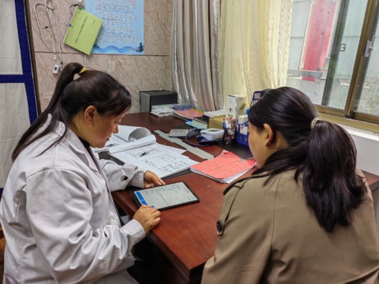 勒门巴族民族乡卫生院次旦卓嘎医生正使用“全科医师智慧医疗助理”辅诊系统为患者看诊