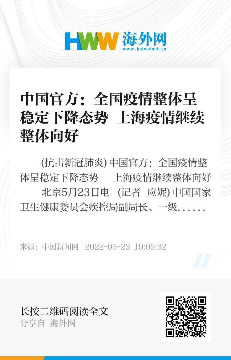 (抗击新冠肺炎)中国官方:全国疫情整体呈稳定下降态势 上海疫情继续整体向好