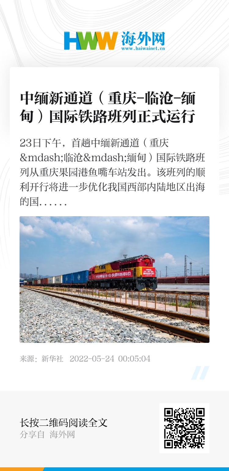 23日下午,首趟中缅新通道(重庆—临沧—缅甸)国际铁路班列从重庆果园港鱼嘴车站发出。该班列的顺利开行将进一步优化我国西部内陆地区出海的国际物流模式及路线。