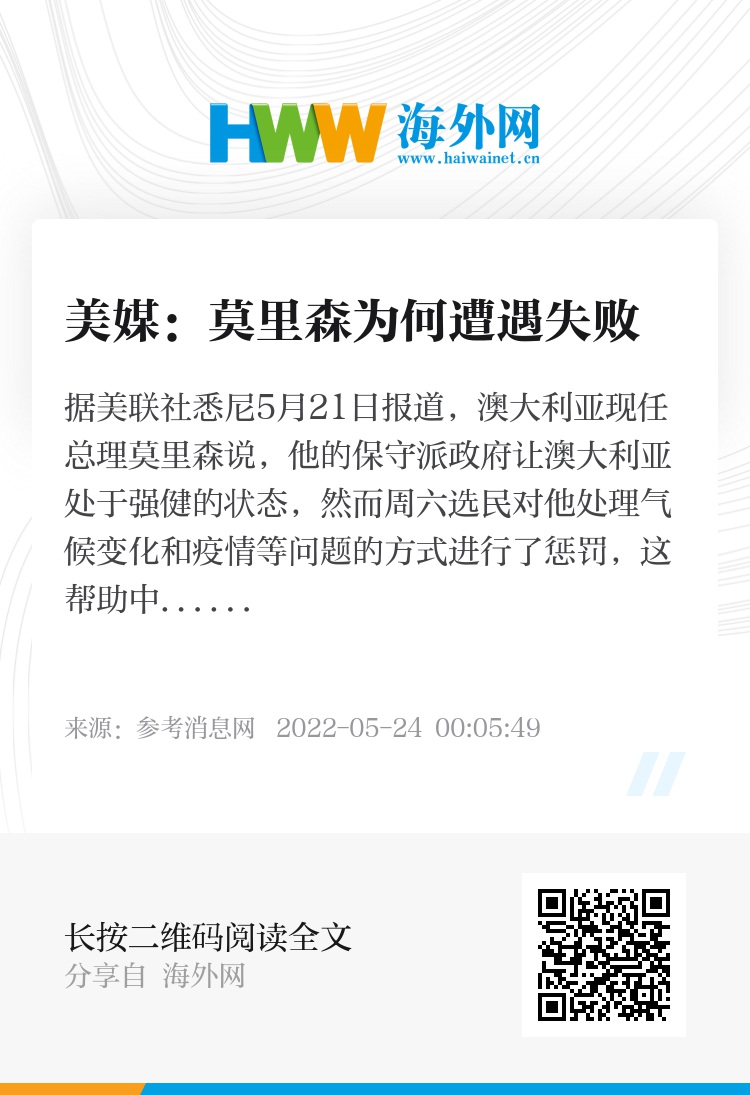 报道还提到,莫里森还因为被认为在澳大利亚社会对待女性问题上缺乏同情心而受到广泛谴责。这一问题受到密切关注是因为爆出了一些破坏性的、震动联邦议会的性骚扰丑闻。