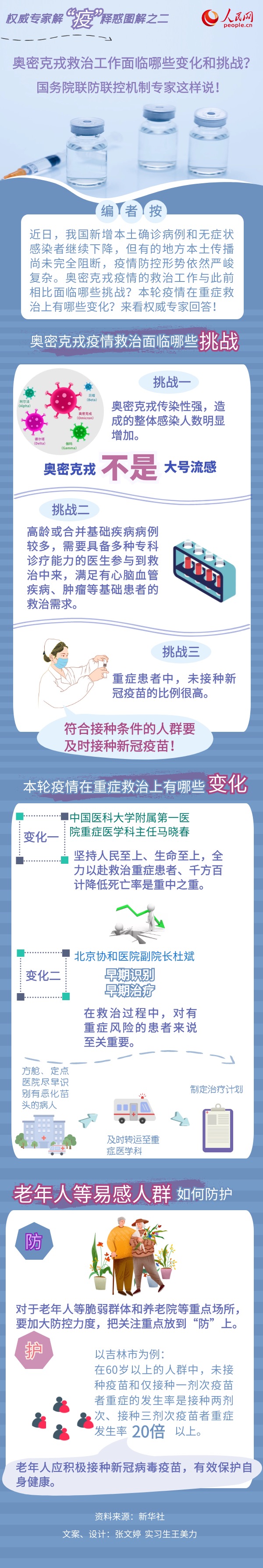 编者按:新冠肺炎疫情发生以来,我国坚持人民至上、生命至上,坚持外防输入、内防反弹,坚持动态清零,因时因势不断调整防控措施。近日,国务院联防联控机制综合组专家就当前我国为什么不能放松疫情防控、奥密克戎疫情的救治工作与此前相比有哪些新变化和新挑战等一系列与疫情防控有关的最新问题进行权威解答。今日起,人民网推出系列图解,为网友解“疫”释惑。